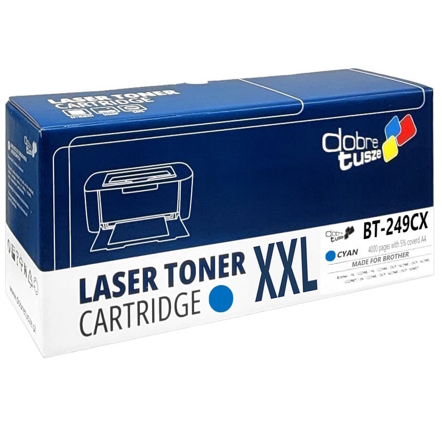 Nowy niebieski toner o zwiększonej wydajności XL do Brother TN-249XLC z chipem - produkt nowy, fabrycznie zapakowany pod kontrolą ISO 9001 i ISO 14001.